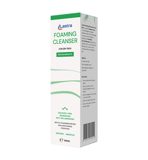 Lastra Foaming Cleanser For Dry Skin is a gentle, Sulphate-Free formula designed to deeply cleanse the skin while maintaining its natural moisture balance. Infused with nourishing anti-inflammatory ingredients, it creates a rich, luxurious foam that lifts away dirt, excess oil, and impurities without stripping the skin.