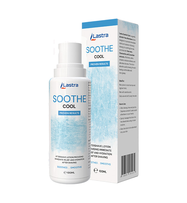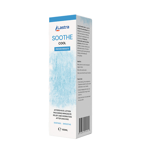Lastra Soothe Cool is a gentle, alcohol-free aftershave lotion designed to provide immediate relief and hydration following shaving. Its soothing formula, enriched with Aloe vera, Chamomile, and Cucumber extracts, effectively calms irritation, reduces redness, and alleviates dryness. The lotion absorbs quickly, leaving the skin feeling comfortable and non-greasy.