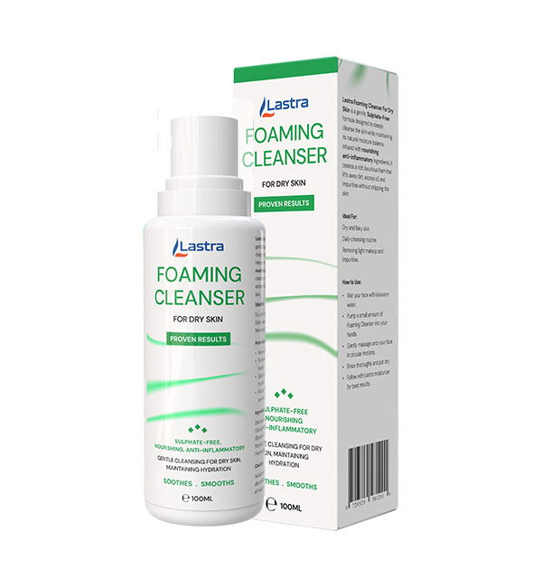 Lastra Foaming Cleanser For Dry Skin is a gentle, Sulphate-Free formula designed to deeply cleanse the skin while maintaining its natural moisture balance. Infused with nourishing anti-inflammatory ingredients, it creates a rich, luxurious foam that lifts away dirt, excess oil, and impurities without stripping the skin.