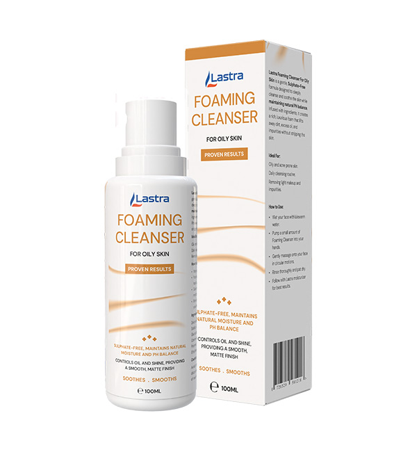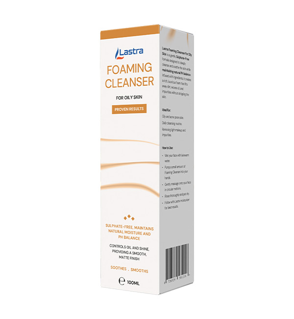 Lastra Foaming Cleanser For Oily Skin is a gentle, Sulphate-Free formula designed to deeply cleanse and soothe the skin while maintaining natural PH balance. Infused with ingredients, it creates a rich, luxurious foam that lifts away dirt, excess oil, and impurities without stripping the skin.